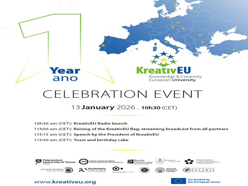 На 13 януари 2026 г. се навършва една година от стартирането на алианса KreativEU, член на който е и Стопанска академия. В тази връзка Ви оправяме официална покана да се присъедините към празненството, посветено на годишнината.