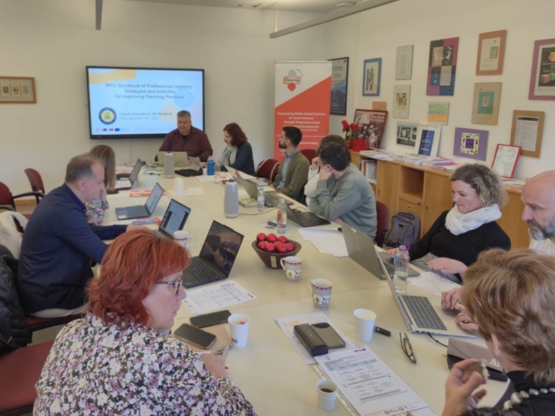 Съгласно предварително съгласувания дневен ред, всеки партньор имаше тематични сесии, които да представи, а всички заедно активно се включваха в последващите обсъждания и дискусии. Стопанска академия представи темата за разработване на Наръчник за професионално обучение: Стратегии и дейности за подобряване на преподавателските практики. Подготовката на Наръчника ще стъпи върху нуждите от професионално обучение на учителите от обхванатите в проекта общо 18 училища от 6 страни, идентифицирани чрез анализ на формуляри за наблюдение, разработените от училищните лидерски екипи планове за професионално обучение и организираните от всяко училище по 3 дейности за професионално обучение. По този начин Наръчникът, включващ общо 54 училищни дейности за професионално обучение, би служил като ценен ресурс за учители и училищни лидерски екипи, посветени на подобряване на преподавателските практики за социално приобщаване на уязвими ученици.