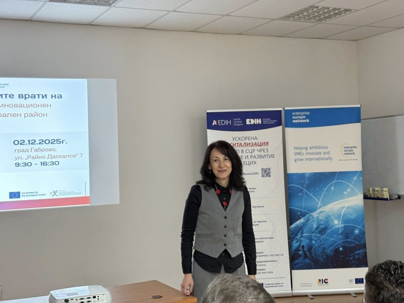 Дигиталната трансформация, изкуственият интелект и иновациите бяха във фокуса на Деня на отворените врати на Европейския цифров иновационен хъб (ЕЦИХ) – Северен централен район, който се проведе на 2 декември 2025 г. в Регионалния иновационен център „Амбициозно Габрово“. Събитието събра представители на бизнеса, публичната администрация и академичната общност от Габрово, Велико Търново, Русе, Разград, Свищов и Силистра и предостави реална възможност за среща между знанието, технологиите и практиката.