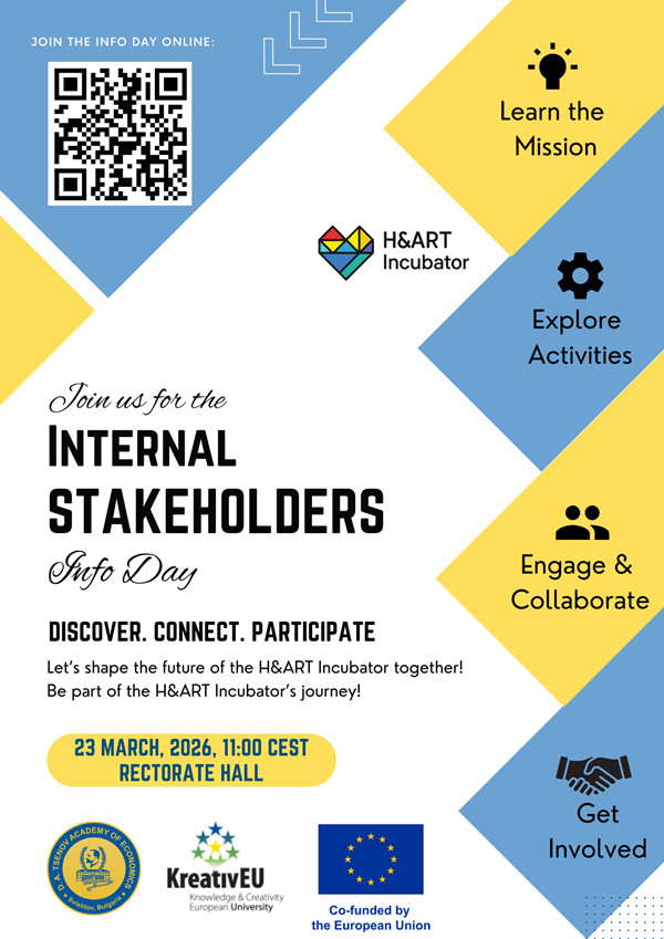 Събитието има за цел да запознае преподавателите и служителите на СА „Д. А. Ценов“ и асоциираните партньори на алианс KreativEU от България с мисията, стратегическите приоритети, ключовите операции и дейностите на инкубатор H&ART.