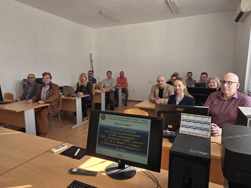 На 22 октомври 2025 г. в аудитория 64 на Стопанска академия „Д. А. Ценов“ – Свищов се проведе кръгла маса на тема „Актуални измерения на учебна документация в ОКС „бакалавър“, ОКС „магистър“ и ОНС „доктор“. Форумът се осъществи в рамките на академичното партньорство между катедра „Индустриален бизнес и предприемачество“ при Свищовската академия и представители на Икономически университет – Познан, Полша.