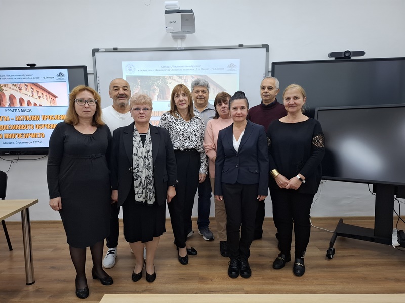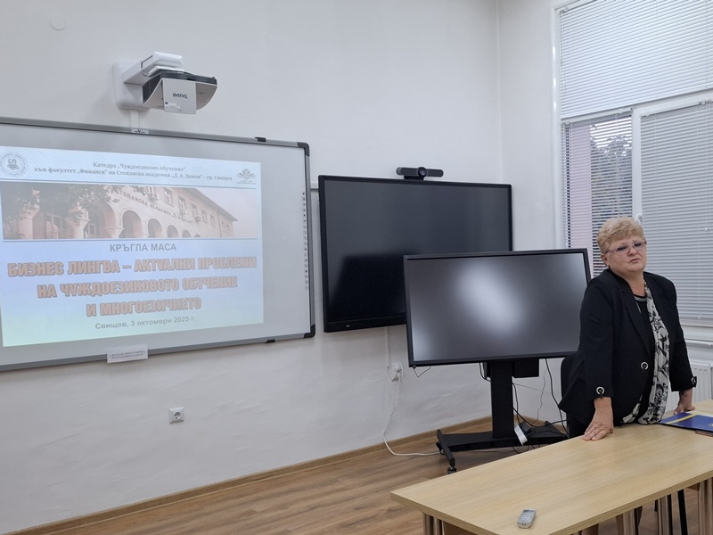 Катедра „Чуждоезиково обучение“ при Стопанска академия „Димитър А. Ценов“ проведе кръгла маса „Бизнес лингва – актуални проблеми на чуждоезиковото обучение и многоезичието“. Научният форум се организира за пета поредна година и събра преподаватели от сферата на висшето образование от страната и чужбина. В него, присъствено и онлайн, участваха около 30 изследователи и преподаватели от България, Великобритания, Молдова и Украйна. Кръглата маса бе първият научен форум, който се проведе след официалното откриване на новата учебна 2025/2026 година, и бе организирана по проект с ръководител ст. преп. д-р Радка Василева – научен секретар на катедрата.