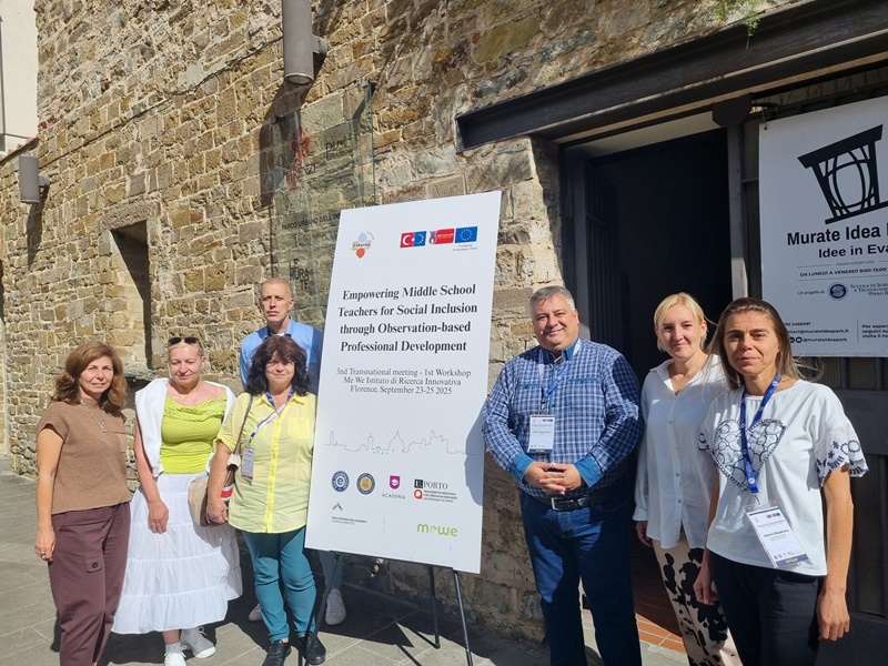 Работен семинар за лидерски екипи (директори и учители) и Трета транснационална среща по проект 2023-2-TR01-KA220-SCH-000170568 „Овластяване на учителите в средните училища за социално включване чрез професионално развитие, базирано на наблюдение“ се проведе в дните 23-25 септември 2025 г. във Флоренция (Италия).