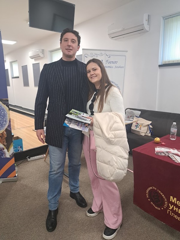 Свищовският университет отбеляза традиционно своето присъствие с ангажиране на партньорски свързаните и доказали във времето способност за активно приобщаване на потенциални диаспори от повече и по-качествени студенти административни звена – Кариерен център – Свищов и отдел „Бакалавърско и магистърско обучение, чиито представители бяха г-жа Галя Тачева, ръководител отдел и д-р Пламен Петров, Координатор образователен маркетинг.
