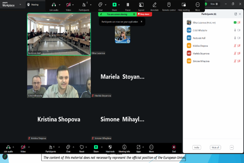 Ректорът – доц. д-р Марин Маринов приветства членовете на водещия партньор, асоциирания партньор, екипа от Стопанска академия, присъстващите в залата преподаватели, студенти и други заинтересовани страни. Координаторът на проекта официално откри събитието. И подчерта, че живеем в модерен, дигитално свързан свят, поради което част от участниците се включиха онлайн.
