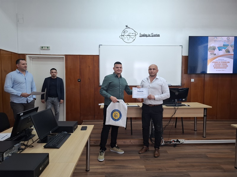В знак на признателност за приноса към връзката между образованието и бизнеса, ръководителят на катедрата удостои членовете на журито със сертификати, подчертавайки значението на партньорството между академичната общност и практиката за подготовката на конкурентоспособни кадри.