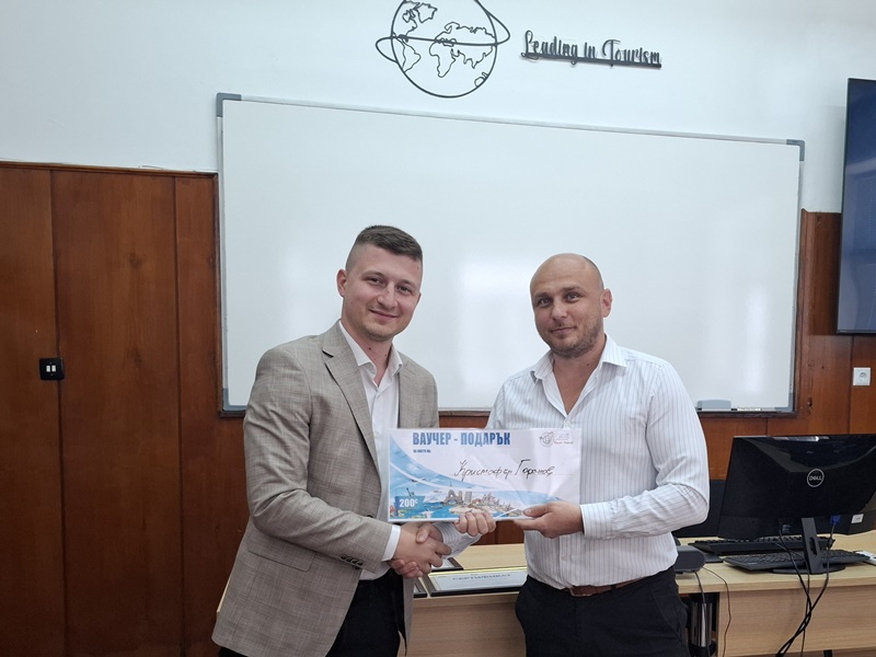 – „Иновативни решения в туризма“ – „Влиянието на социалните мрежи върху формирането и динамиката на съвременните туристически тенденции“, Здравко Димитров, спец. „Икономика на туризма“, втори курс;