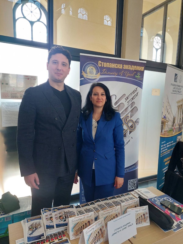Представители на Стопанска академия „Д. А. Ценов“ – Свищов бяха д-р Пламен Петров – координатор „Образователен маркетинг“ към Кариерния център, и г-жа Галя Тачева – ръководител на отдел „Бакалавърско и магистърско обучение“. Те представиха пред присъстващите богатите възможности за обучение, модерните специалности и перспективите за професионална реализация, които Академията предлага.